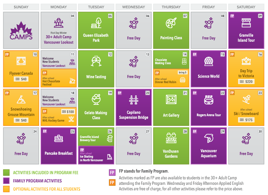 Camps at VGC is one of Vancouver’s most exciting English camps, providing students from all over the world a unique Canadian learning adventure during summer and winter!